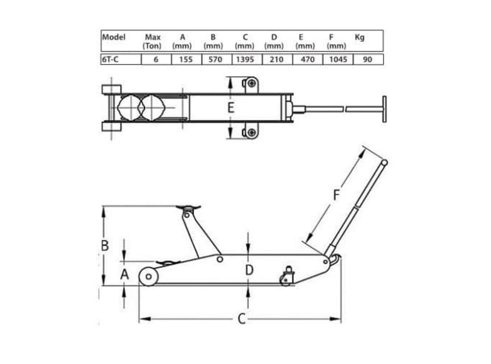 El crique carro Compac 6T es un gato hidráulico de baja altura diseñado para uso en gomerías y talleres mecánicos que requieren movilidad y capacidad de elevación para vehículos pesados. Su chasis soldado en acero de alta resistencia garantiza rigidez y durabilidad; la bomba hidráulica de accionamiento suave permite levantar cargas de hasta 6 toneladas con pocos impulsos de la manija. Incorpora ruedas delanteras giratorias y traseras rígidas para maniobrar fácilmente bajo el vehículo, un pasador de seguridad y válvula limitadora que evita la sobrecarga. Acabado con pintura horneada para mayor protección contra corrosión; ideal para uso profesional y continuo. El 6T-C prioriza rapidez y seguridad en vehículos pesados: sistema de descenso "levantar y girar" que evita bajadas accidentales, control de descenso suave incluso a carga máxima y válvula de sobrecarga que protege el circuito hidráulico.