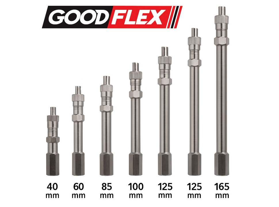 Permite inflar la rueda cuando la válvula está ubicada en un lugar de difícil acceso.