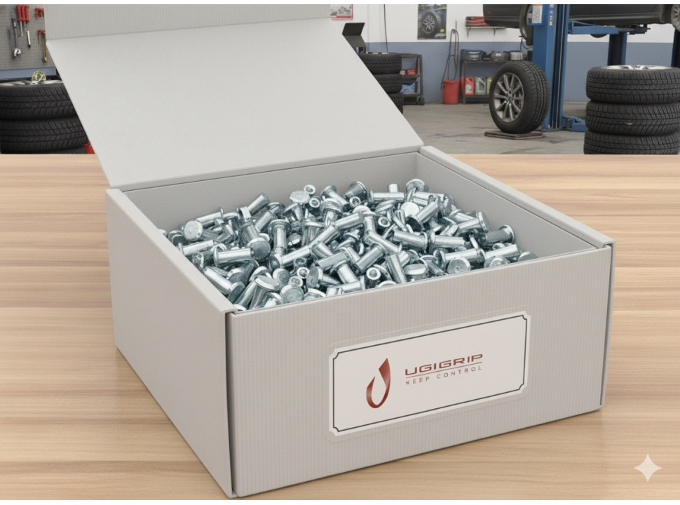 El clavo UGI-GRIP 9-14-1 pertenece a la serie de Clavo de acero con un Ø 9 mm (Singleflange Ø 9 mm) y está fabricado en acero con tratamiento de zinc blanco, que garantiza una alta resistencia a la corrosión y una larga vida útil en condiciones húmedas y frías. Su cuerpo de 9 mm de diámetro y el vástago de 4,90 mm aseguran un anclaje sólido en el neumático. La longitud total de 14 mm proporciona una penetración adecuada para un agarre eficaz en hielo y nieve, sin comprometer la estabilidad y confort de conducción. La traba simple facilita una instalación segura y estable en neumáticos estándar de vehículos de turismo. Además, está disponible en varios colores de recubrimiento, permitiendo adaptarse a diferentes requisitos técnicos y estéticos.