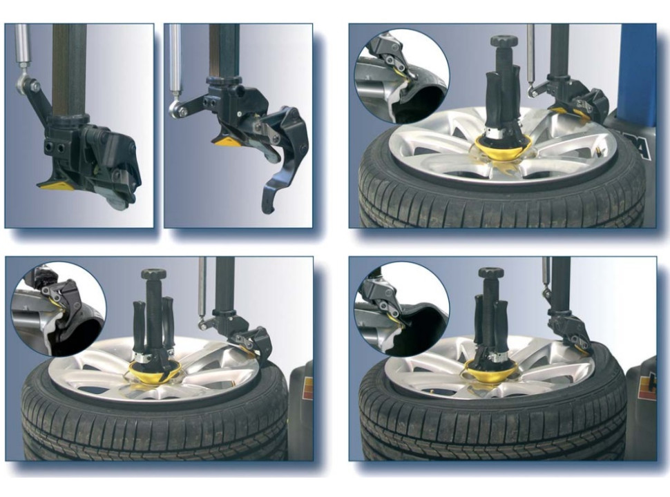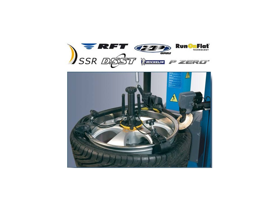 Desmontadora concebida para facilitar al máximo las operaciones de desmontaje y montaje de todos los modelos de neumáticos y en particular de coberturas rígidas, neumáticos bajos, o súper-bajos UHP y Run Flat, de nueva concepción cómo GoodYear RunOnFlat, Pirelli Euforia, Bridgestone RFT, Michelin ZP, Continental SSR, Dunlop DSST.