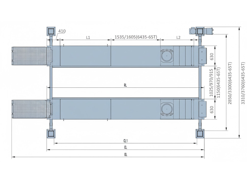 La versión B (alignment) del EE-6435V2 incorpora placas deslizantes largas y posiciones ajustables para platos de alineación, ideal para líneas de alineación y servicio general. El sistema electro-hidráulico con control de flujo ofrece movimientos suaves; el limitador de altura protege los cilindros y la alarma de descenso aumenta la seguridad operativa. Liberación eléctrica desde el panel, con tensión de seguridad a 24 V.