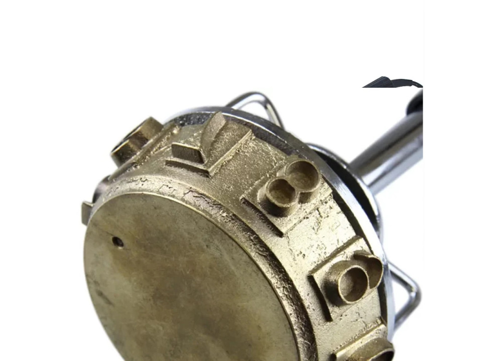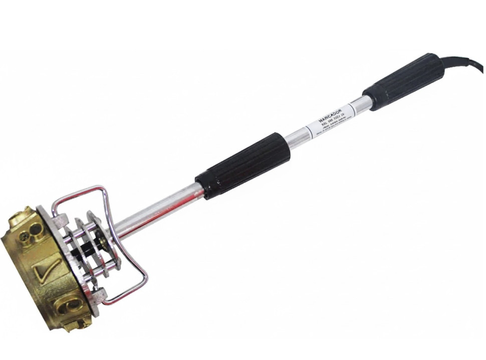 Marcador eléctrico para identificación y numeración de neumáticos: grabado térmico rápido y limpio, corona giratoria del 0 al 9 (12×22 mm) y resistencia blindada de 450 W. Disponible en 220 V, con cuerpo cromado y opción de logo frontal.