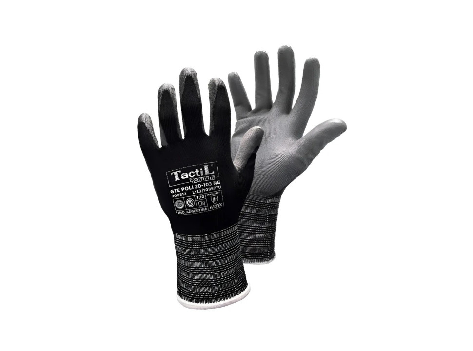 Este guante táctil en versión "Poli" presenta un tejido interior de alto ajuste combinado con un recubrimiento de poliuretano sobre palma y dedos, lo cual garantiza una destreza casi equivalente a trabajar sin guantes. El recubrimiento de poliuretano proporciona excelente adherencia en superficies secas o ligeramente húmedas, mientras que su base elástica y ligera facilita la ventilación de la mano y reduce la fatiga durante jornadas prolongadas. Gracias a su ajuste anatómico, el usuario mantiene alta precisión al manipular piezas pequeñas, componentes electrónicos o herramientas de ensamblado. El puño elástico asegura un calce firme evitando la entrada de partículas y mejorando la seguridad general. Ideal para líneas de montaje, mantenimiento fino, manipulación de piezas delicadas y entornos donde la sensibilidad táctil es clave sin sacrificar protección.