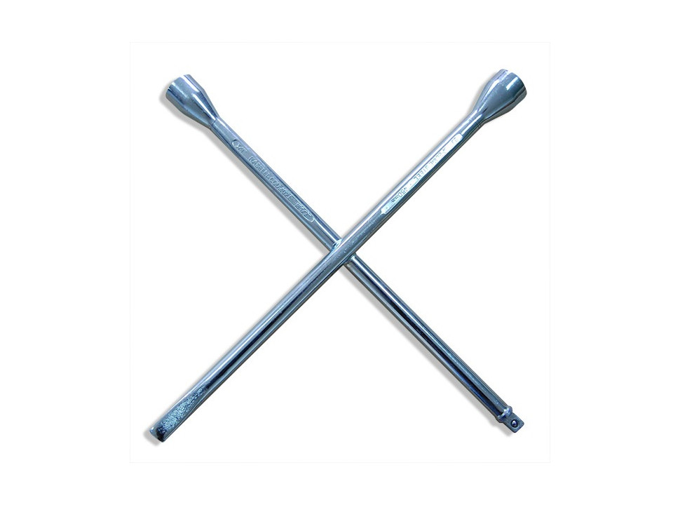 Llave en cruz profesional Raselli de 450 mm con 2 bocas (3/4" y 23 mm), 1 uña auxiliar y encastre de 1/2" para usar con vasos. Más palanca, versatilidad y rapidez en gomerías, talleres y flotas.