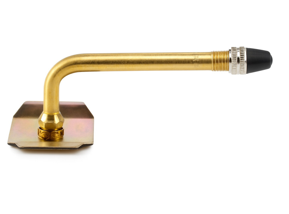 La válvula metálica TR-J 1175 Curva de 120 mm de largo esta destinada para el reemplazo en las cámaras de aire de equipos viales y vehículos especiales.
