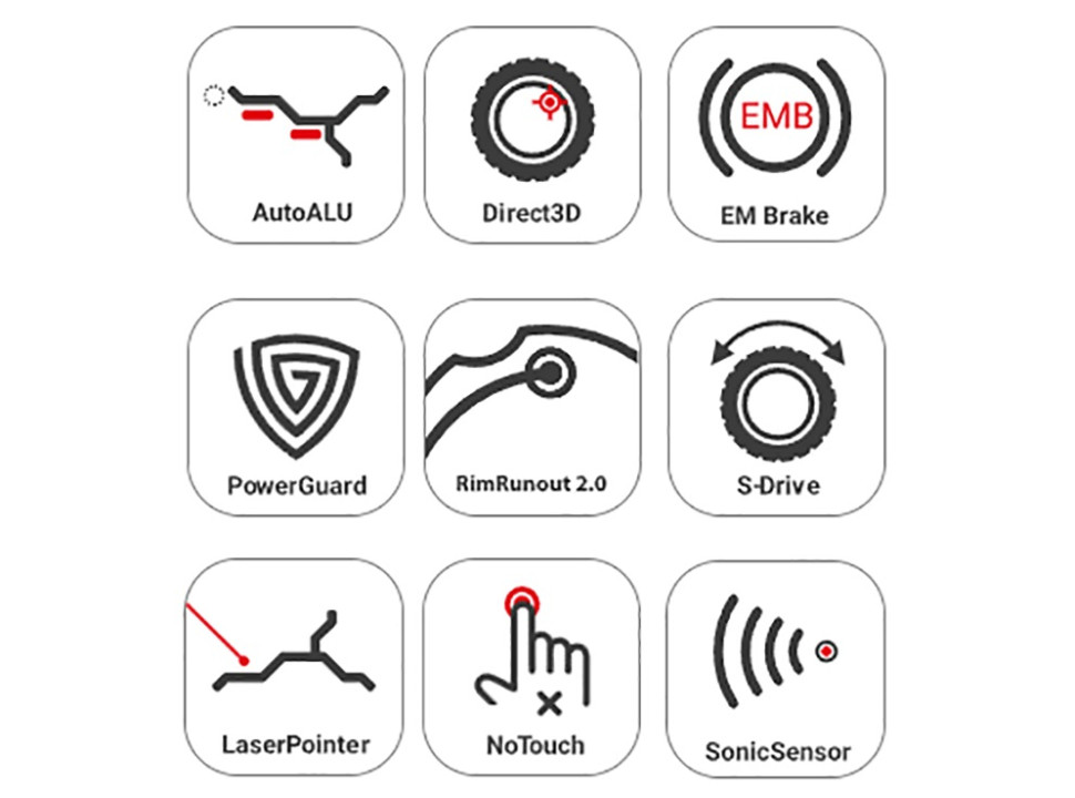 Diagnóstico del estado de la llanta: La función RimRunout, mediante un rodillo especial, permite detectar desviaciones de la llanta respecto de la circunferencia ideal, determinando la necesidad de reparación o sustitución del disco.