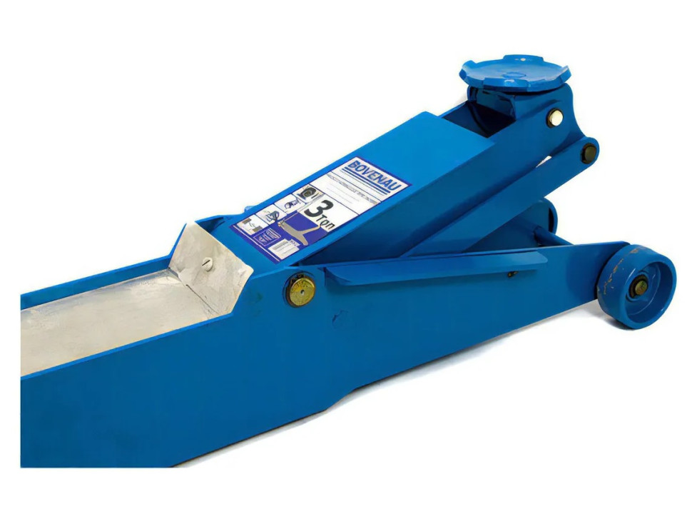 Gato hidráulico de piso Bovenau J3200 (3 toneladas): chasis de acero soldado, perfil bajo para acceso cómodo y construcción robusta para uso intensivo en taller.