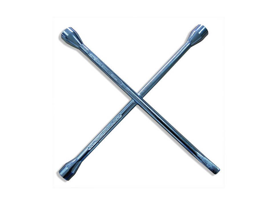 Llave en cruz profesional Raselli de 450 mm, en acero cromado, con 3 bocas para tuercas de rueda y 1 uña auxiliar; pensada para gomerías, talleres y flotas que requieren más palanca y durabilidad.